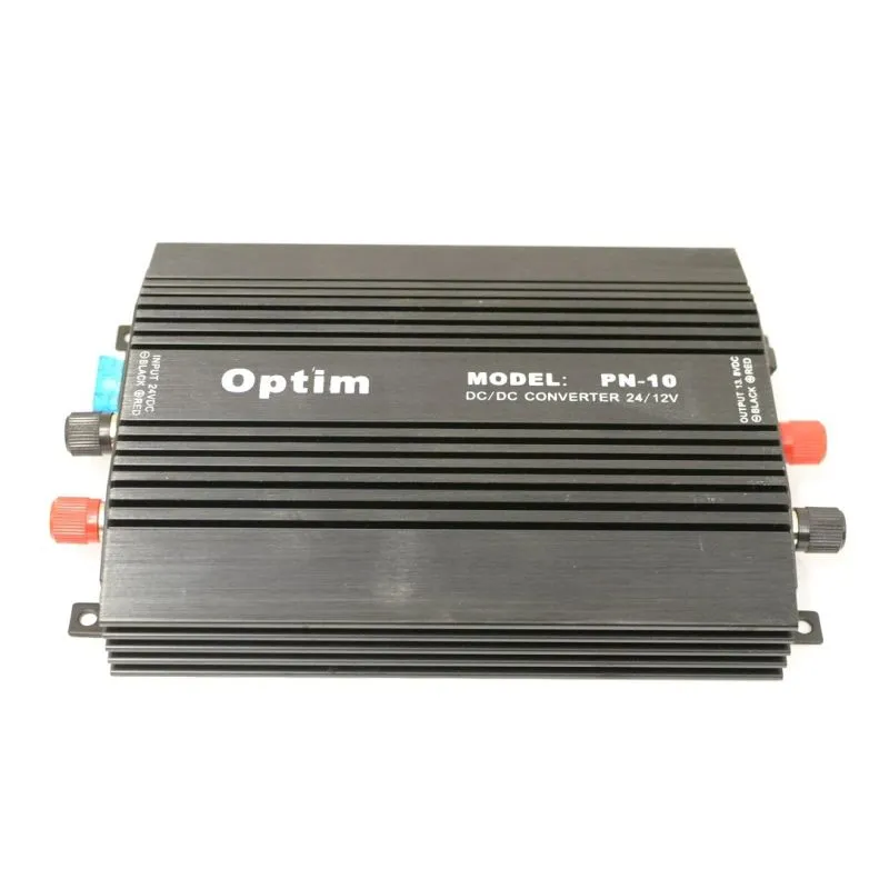 Преобразователь напряжения PN-10 OPTIM предназначен для питания радиостанций и другой коммуникационной аппаратуры с номинальным напряжением питания **13,8 В** от бортовой сети грузовых автомобилей, автобусов, спецтехники и железнодорожного транспорта, где стандартное напряжение составляет **24 В**.